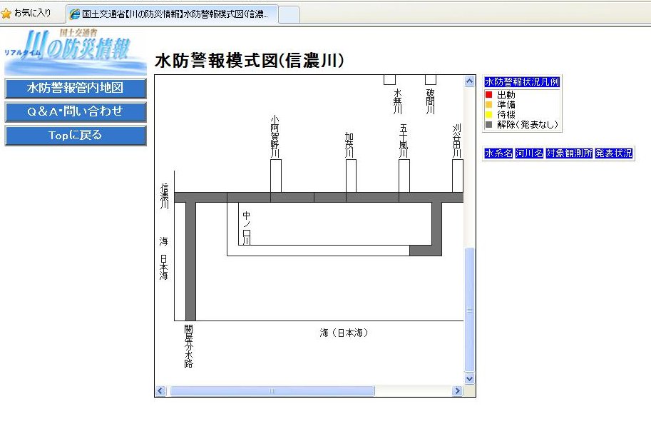 国土交通省【川の防災情報】水防警報模式図(信濃川)は下の様なページだ。